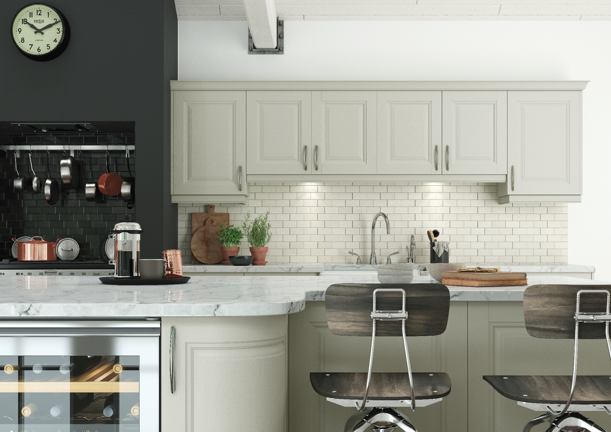 The ornately constructed Jefferson door with its moulded, raised centre panel will bring your rural space to a different level. Available with a large range of specially appointed accessories, the number of design possibilities are endless with this classically elegant kitchen.