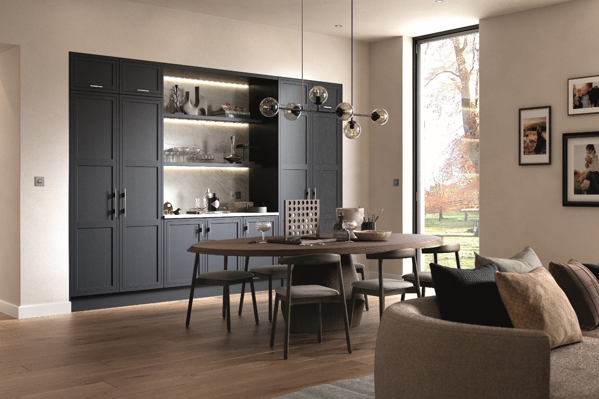 A simplistic narrow shaker style, Arrington is suited to both classic and contemporary settings. Its natural ash grain combined with a subtle line detailing on the outer door frame adds richness to its design. Paired with its extensive selection of accessories, Arrington’s versatility means that it can be the perfect backdrop to any room throughout your home.