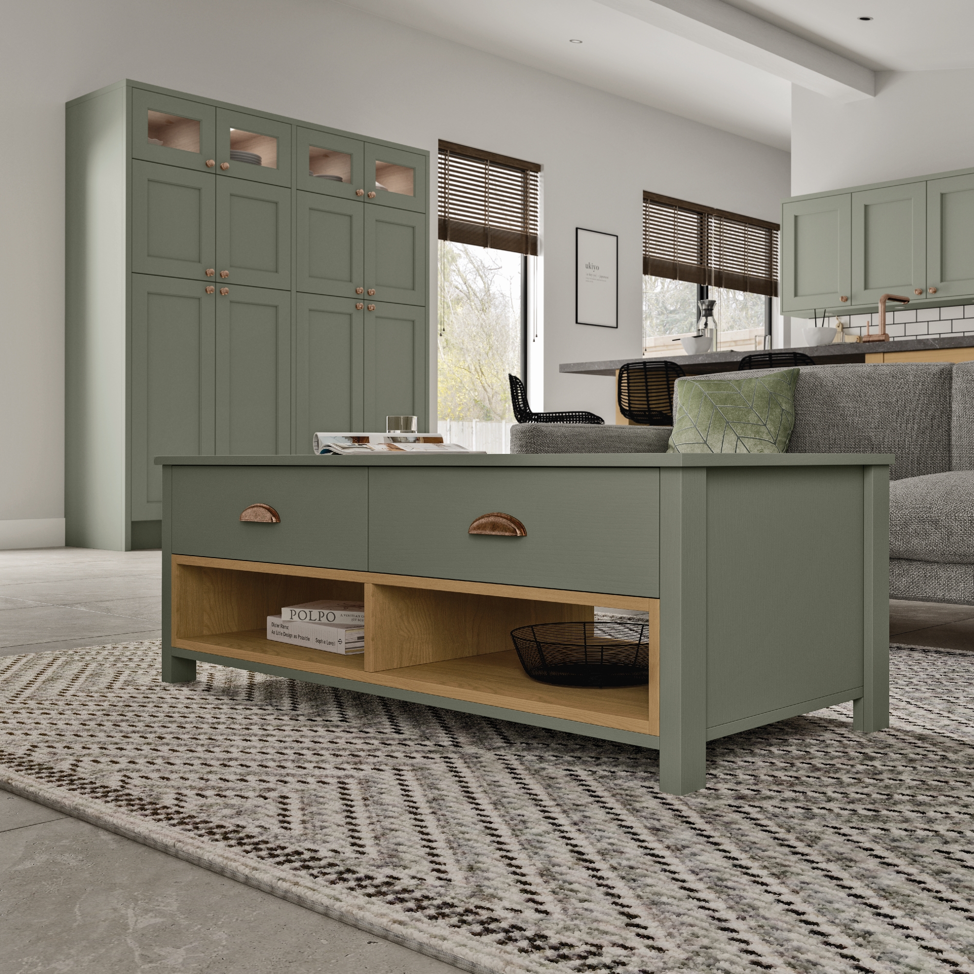Often seen in a more traditional setting, Wakefield is successfully used here to add a more eclectic look and feel to this contemporary open plan living space. Open shelving features heavily to add practical and decorative storage and gives this modern area a sense of warmth and homeliness.